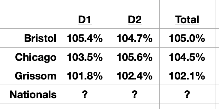 The reason for tracking in this manner is because the goal for this year has always been to trophy at Nationals in C-Street with this car. Tracking these percentages is a way to answer the question: am I anywhere close?