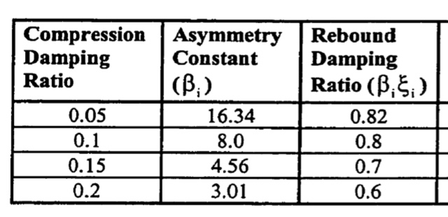 AFAIK, this is the earliest published analytical result supporting the widely used practice of weighting towards high rebound and low compression which was the nearly universal damping characteristic used since the dawn of the automobile. This provides a rational answer to Dixon’s question about asymmetric damping in the automotive industry I talked about in Part 1. Apparently Dixon, even in his 2006 2nd edition of The Shock Absorber Handbook, didn’t know about this result in Muluka’s thesis from eight years before. Since then there have been numerous studies which confirm Muluka’s results, i.e. more rebound than compression produces a better ride and better grip.