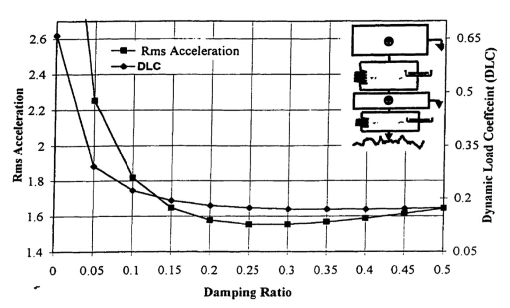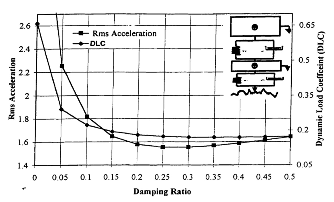 Muluka found that 25% to 30% of critical damping produced the best (minimum) DLC as shown in Figure 3 below, which is his Figure 4.2.