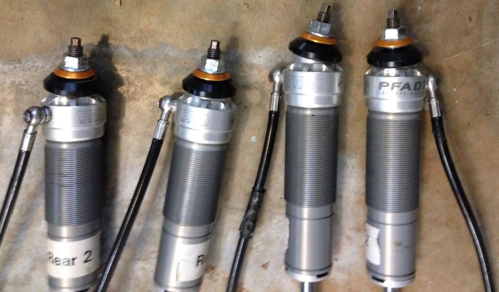 *Update: We invested in double-digressive pistons and had them valved to a specification I wrote, using Dennis Grant’s on-line calculator. The car was so good at every event (on various surfaces) that we were never tempted to turn one of the adjusters. I trophied in the car at the first national tour event we attended, on a very bumpy surface, but the engine blew up soon after. That was that.