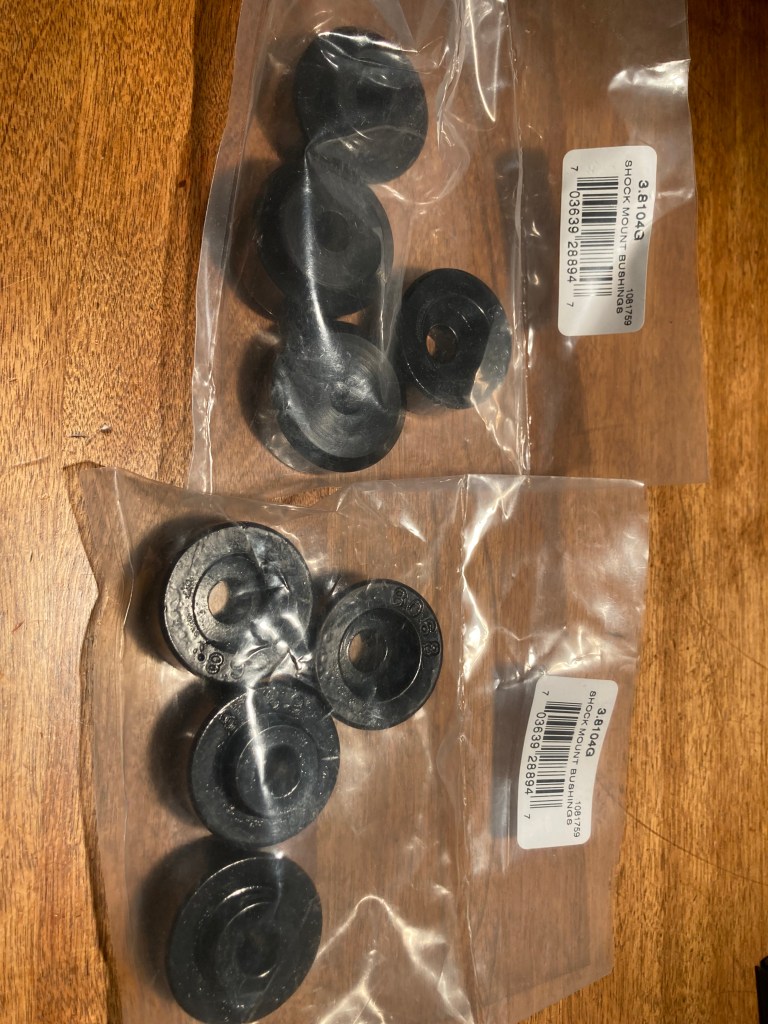 Just before I left I received a set of upper shock bushings made from polyurethane which will be installed with the Penskes when they get here. Some people may not realize that these are legal in Street class. They should make a slight improvement in shock response. The Ohlins I had on the C5 had no bushings at all… they fitted metal to metal at the upper end and transmitted a lot of additional noise into the cabin. The Konis mounted now re-use the stock rubber bushings. I have them cranked down pretty tight to limit lost motion.