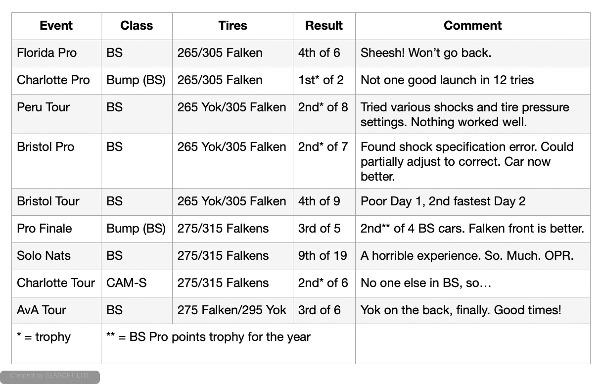 That makes nine national events I raced in this year, the most ever for me in a single year. I trophied at four events and took a 2nd place points trophy for the year in BS in Pro, but no class wins. Let’s try to fix that next year. With the Penske shocks being revalved to correct my math error and Yokohama tires on the rear it’s definitely the goal for 2023, though I’ll do fewer events.